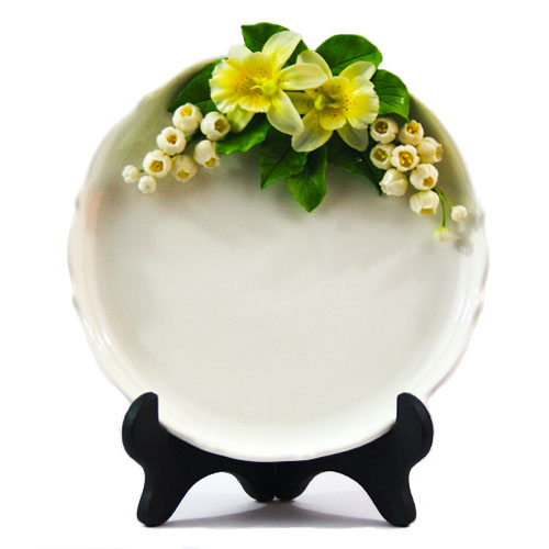 بشقاب چینی دور توری، تزیینشده با گلهای بابونه از خمیر چینی، قابل شستشو...