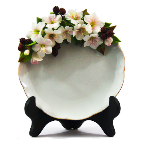 بشقاب چینی با گل سفید موگه ایتالیایی