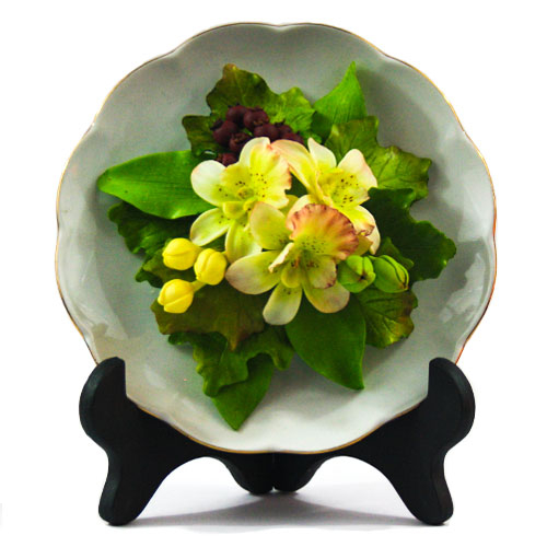 بشقاب چینی تزیینشده با گلهای خمیری دستساز، الهام گرفته از سبک ایتالیایی...